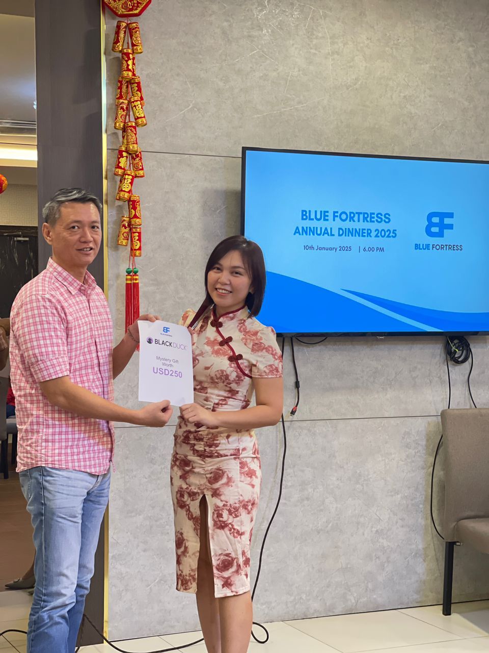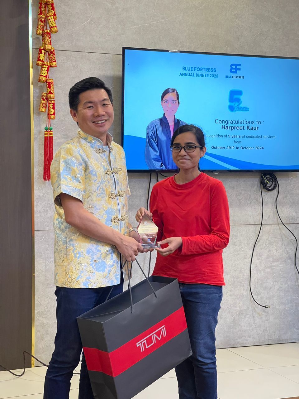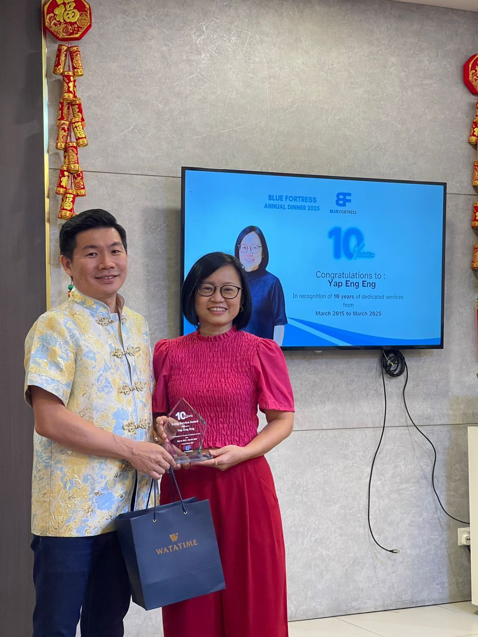 🌟 This year, we were especially proud to present Long Service Awards to two outstanding individuals: Harpreet, for 5 years of dedicated service, and Yap Eng Eng, for an impressive 10 years of contribution to Blue Fortress. Their time, commitment, and expertise have been instrumental in smoothing the operations of Blue Fortress, and we are deeply grateful for their unwavering dedication.