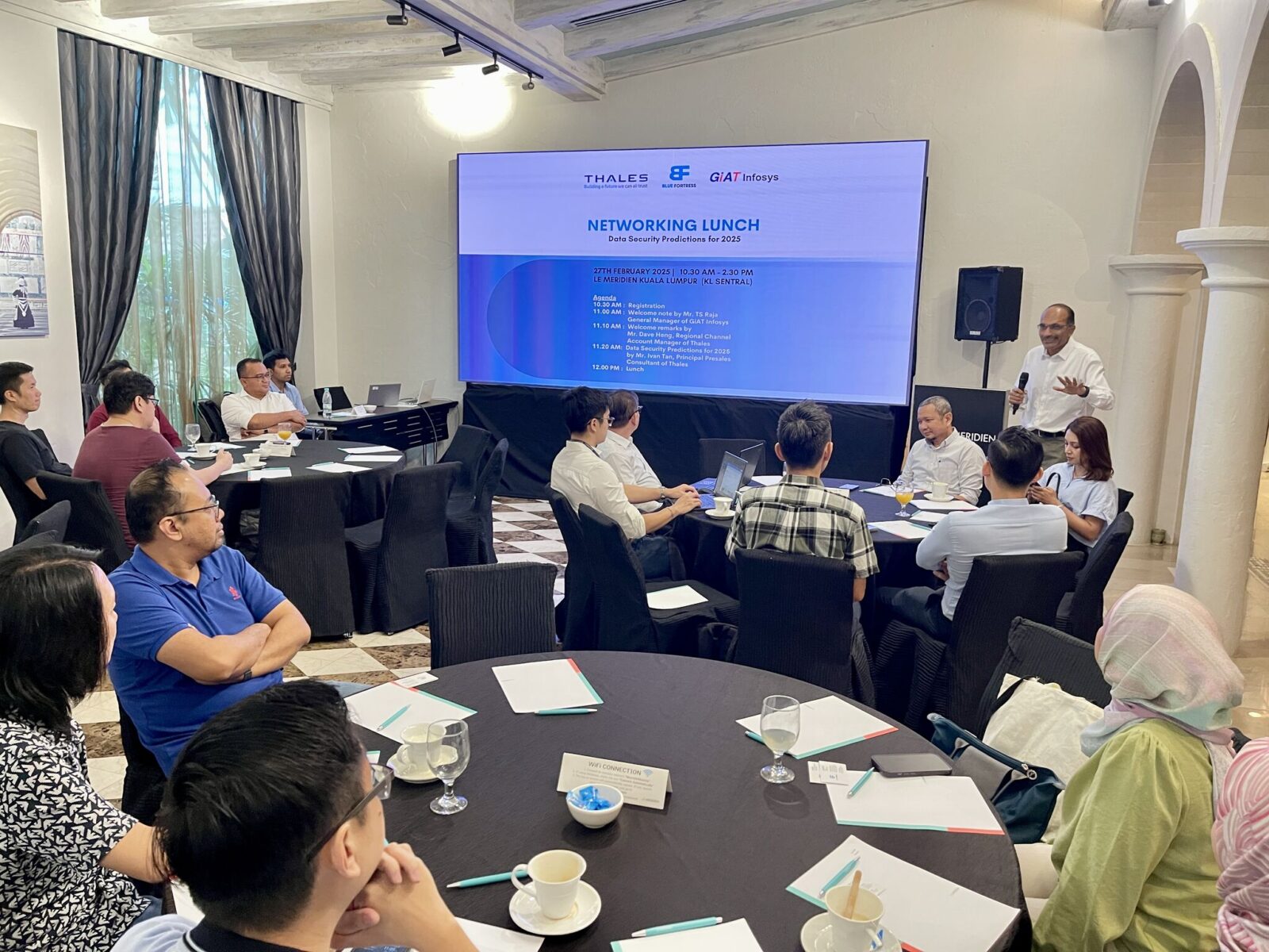We extend our sincere thanks to all friends and network who attended our Networking Lunch: Data Security Predictions for 2025. It was a pleasure discussing the future of data security with Thales, our platinum partner, Giat Infosys, and Blue Fortress. We delved into crucial challenges and solutions for 2025, including AI, evolving technology, and the growing threats. With the latest update, we hope we could serve you better in coming years and strengthen the Malaysia security system. Your participation made it a truly valuable event. On behalf of Thales, Giat Infosys, and Blue Fortress, we sincerely appreciate you joining us on this journey.